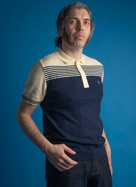 The Michael - Blue & Cream Knit Polo By 66 Clothing