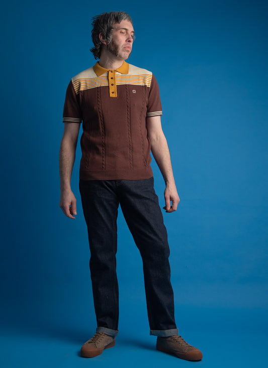 The Michael - Chocolate, Butterscotch & Cream Knit Polo By 66 Clothing