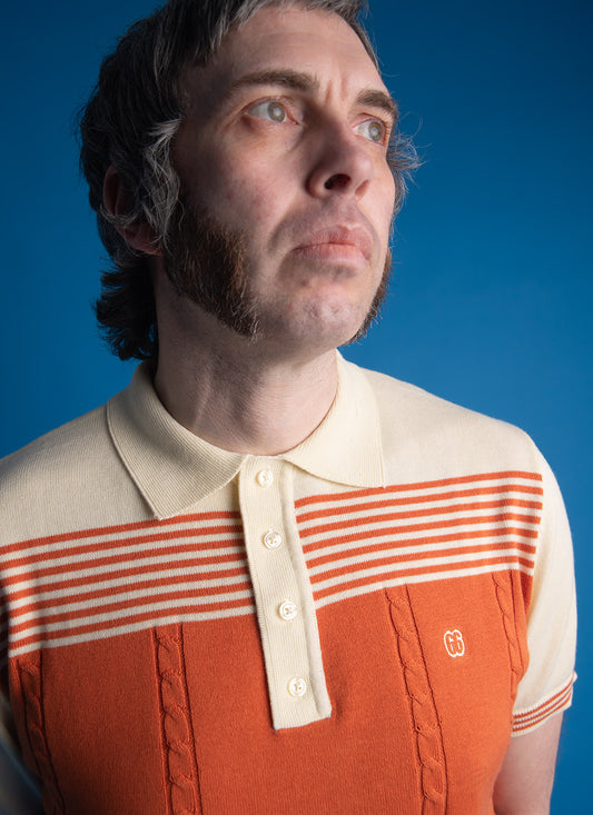 The Michael - Orange & Cream Knit Polo By 66 Clothing