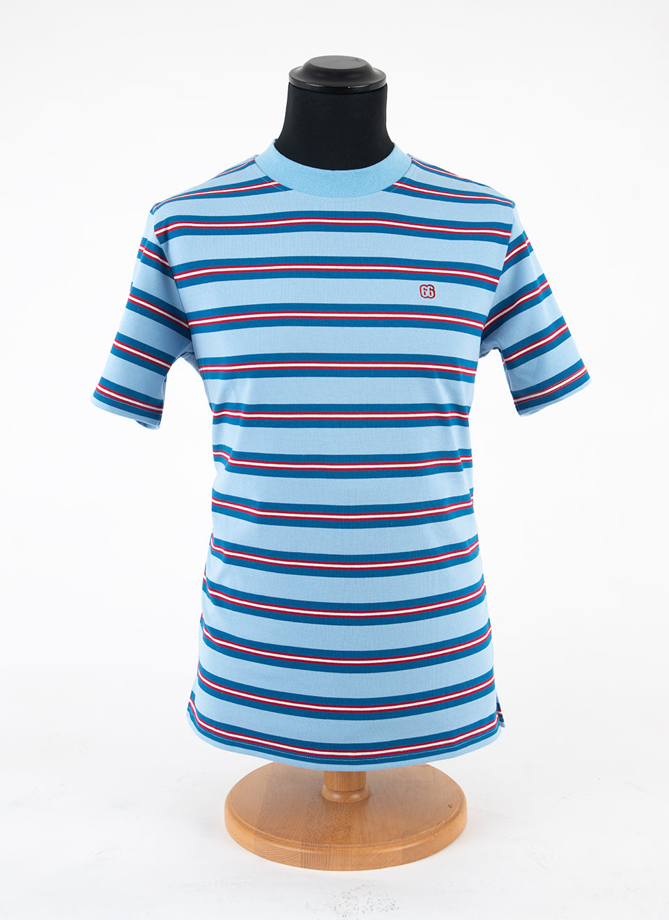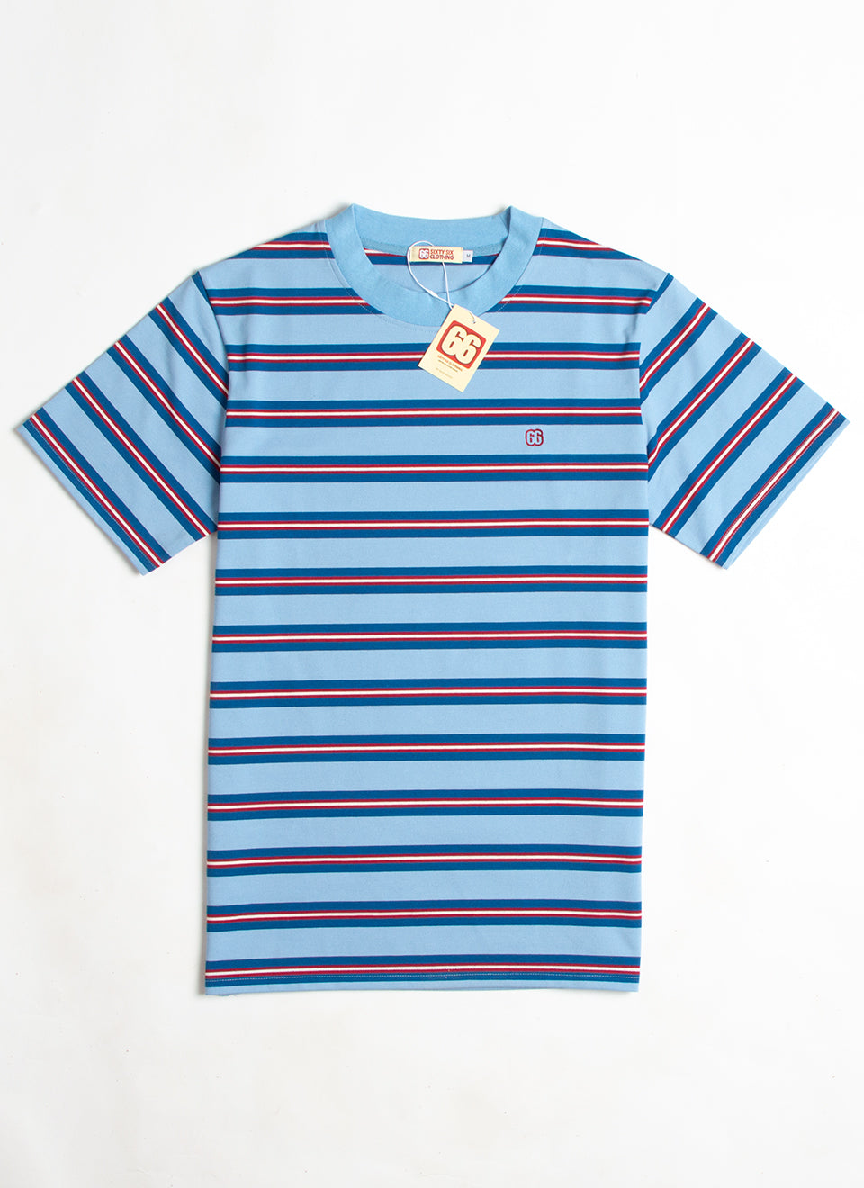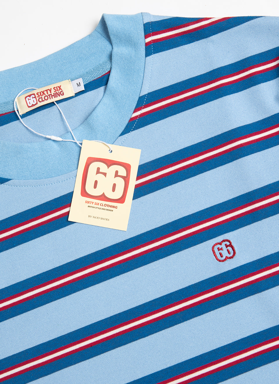 The Downing 2 Shades Of Blue & Dark Red - 60s Surf Inspired Stripe 300g T-shirt by 66Clothing
